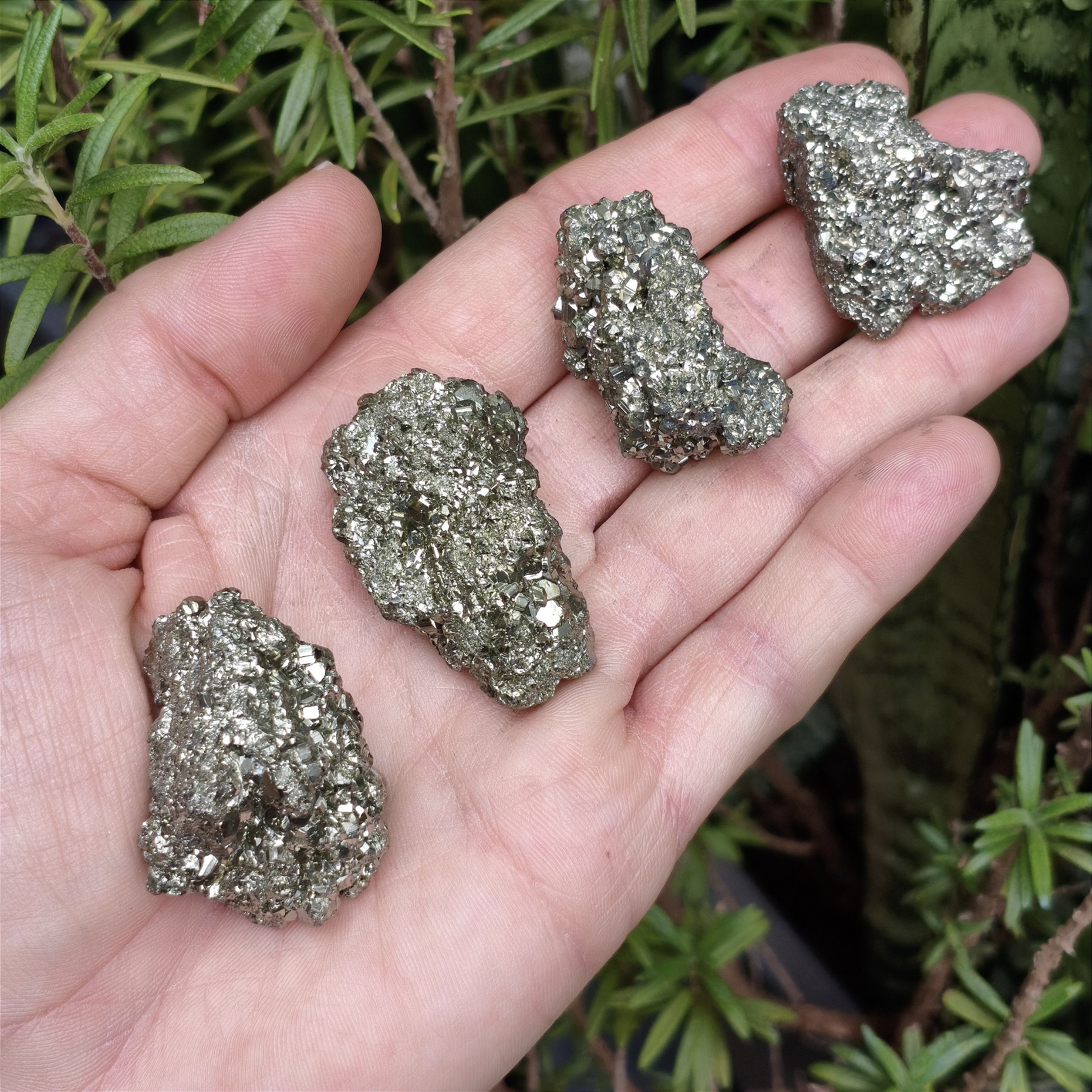 ✨ A Pirita é a pedra por excelência para quem busca prosperidade, sucesso e proteção das finanças. Esta seleção de Qualidade A apresenta um brilho metálico mais intenso, sendo ideal para fortalecer o foco, a força de vontade e atrair abundância e vitalidade.