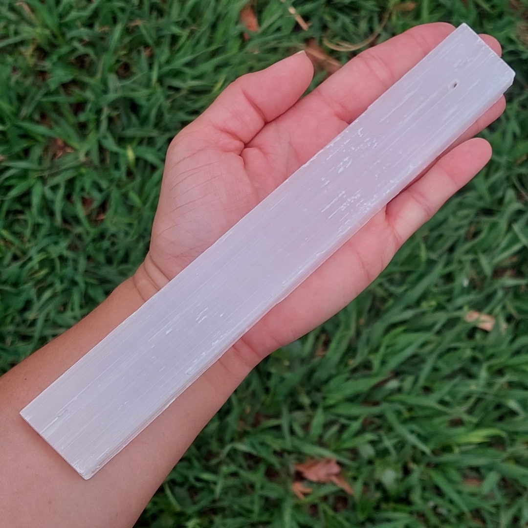 A selenita é conhecida por sua capacidade de limpar energias negativas e abrir caminhos espirituais.
